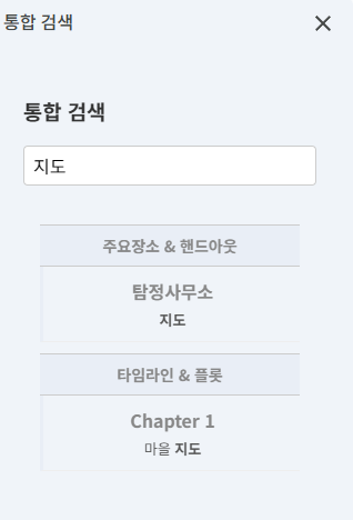 어떤 탭에 있든 NPC, 장소, 단서 등을 한 번에 검색할 수 있는 사이드바를 엽니다.